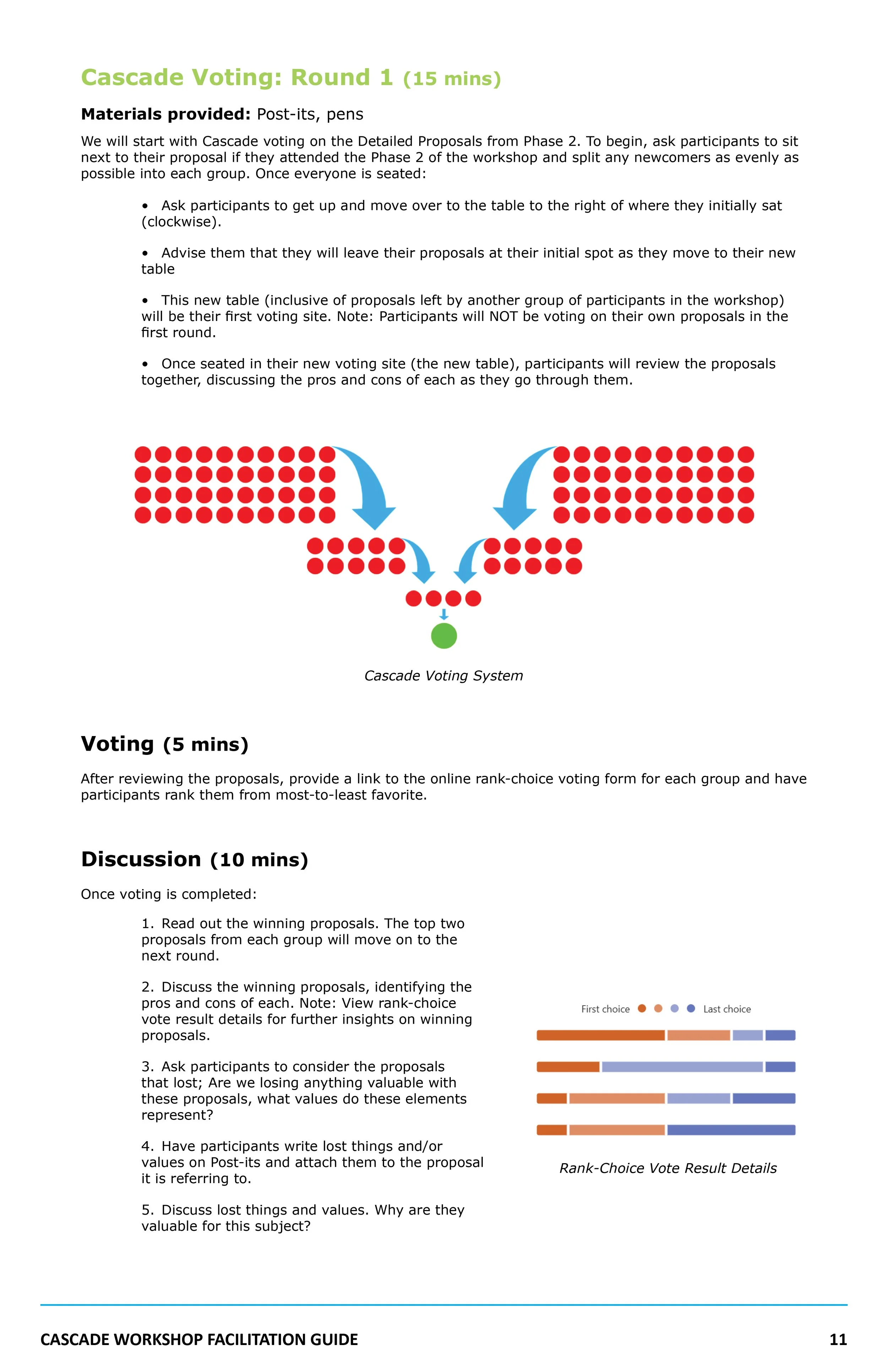 A workshop was developed as a way to test my voting system. Using Miro allowed me to develop multiple workshopA voting system called Cascade was developed using the rank-choice method currently used in countries like Ireland as a fairer alternative to our first-past-the-post system as baseline. Then, by incorporating multiple rounds of votes, communities are allowed for ongoing discussion and engagement as ideas are fleshed out and a final decision is reached.scenarios to consider and discuss with school community members to find the best way to run it.