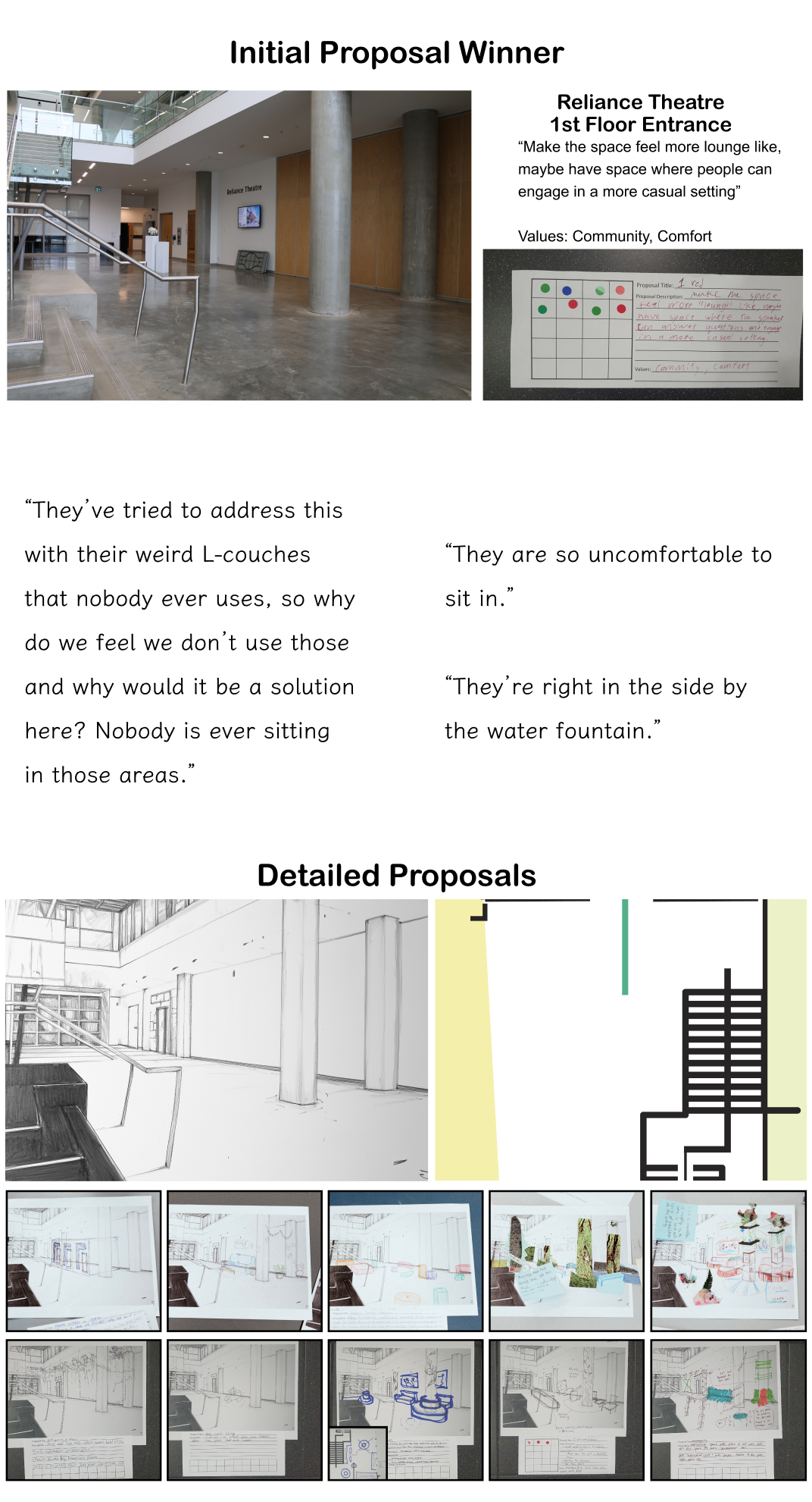 Running the workshop as part of user-research provided a real-world test for the voting system. For this workshop, participants discussed the spaces around Emily Carr University to determine a space which garnered the most interest in developing, then working together to create a new vision for how that space could be better utilized.