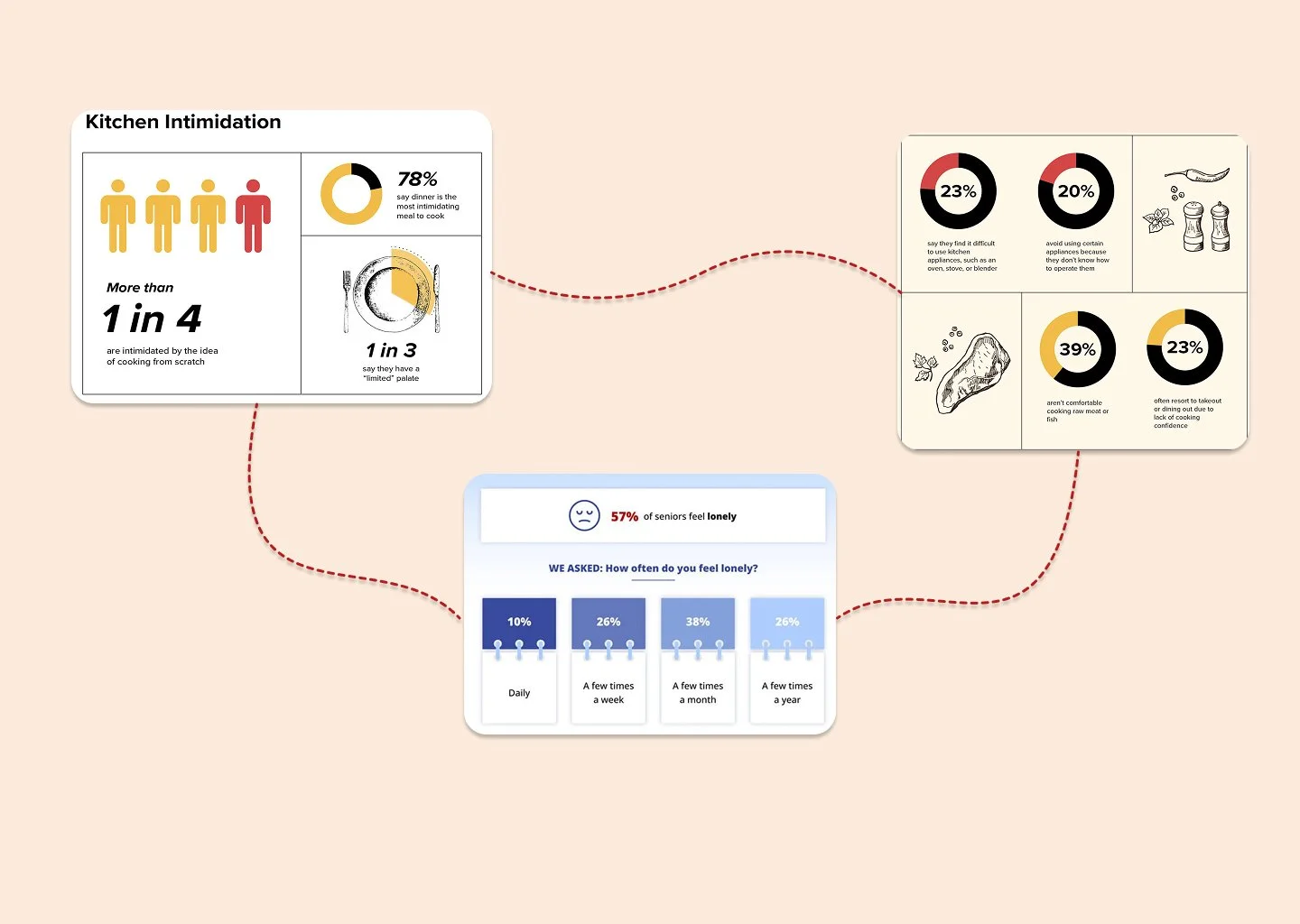 Statistics show a growing segment of seniors are experiencing loneliness, and with the older population growing each year this will become a an issue to tackle. Likewise, an increasing amount of young adults lack basic cooking skills and rely more on services like food delivery for their meals.
